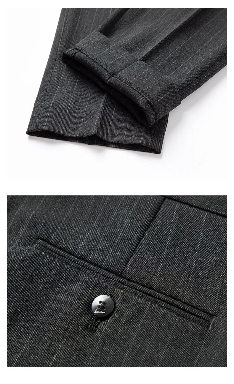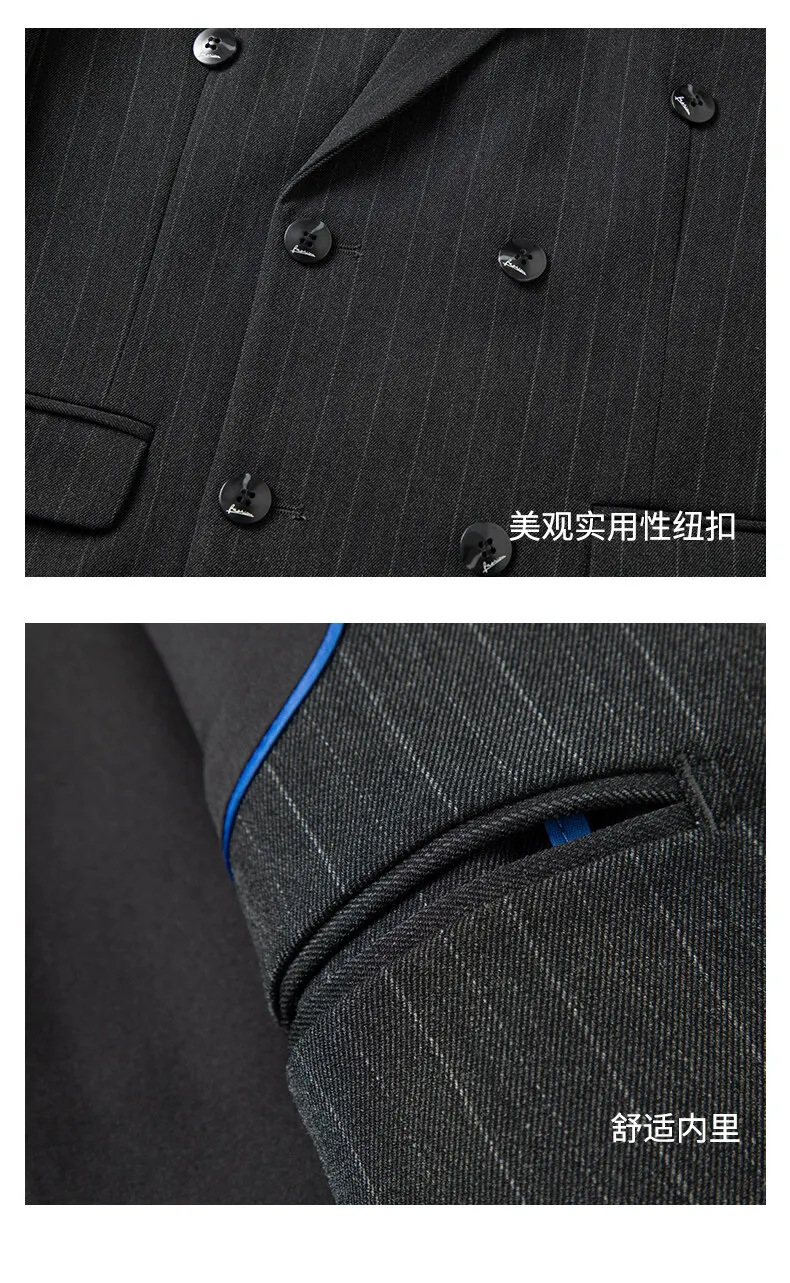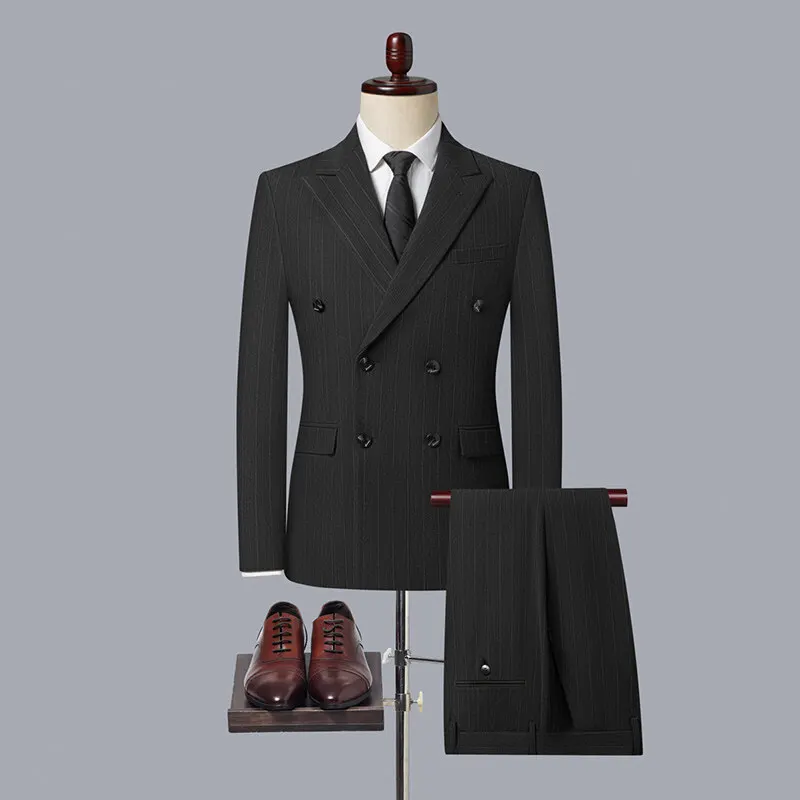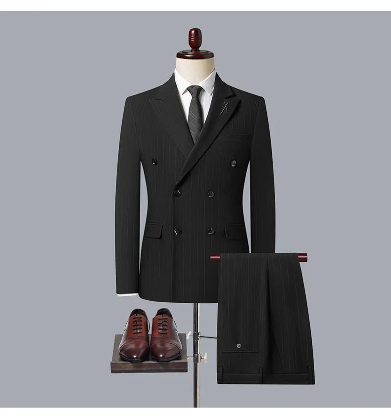 2025 Korean High Quality Double-Breasted British Style Slim Business Suit Two-Piece Set (Suit + Trousers)