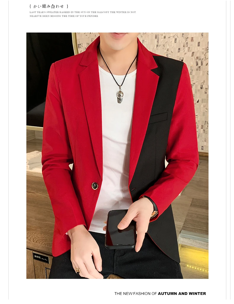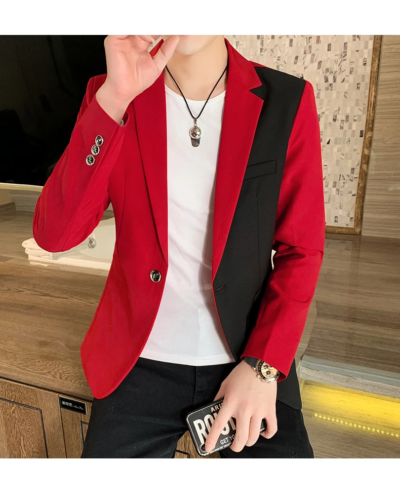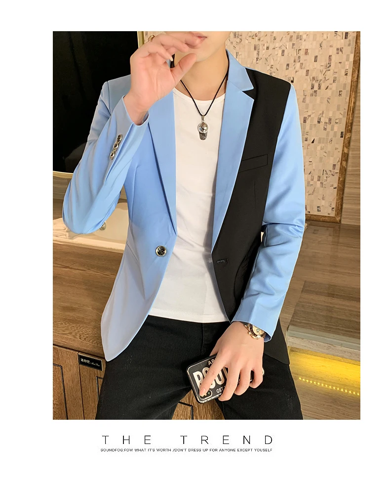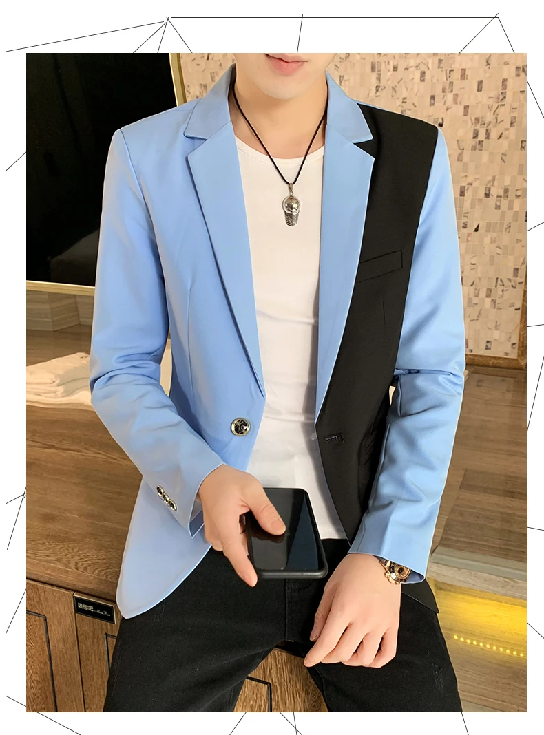 Men’s Slim Fit Blazer High-Quality Autumn Fashion Handsome Match Color Business Casual Korean Suit Costume Croisé